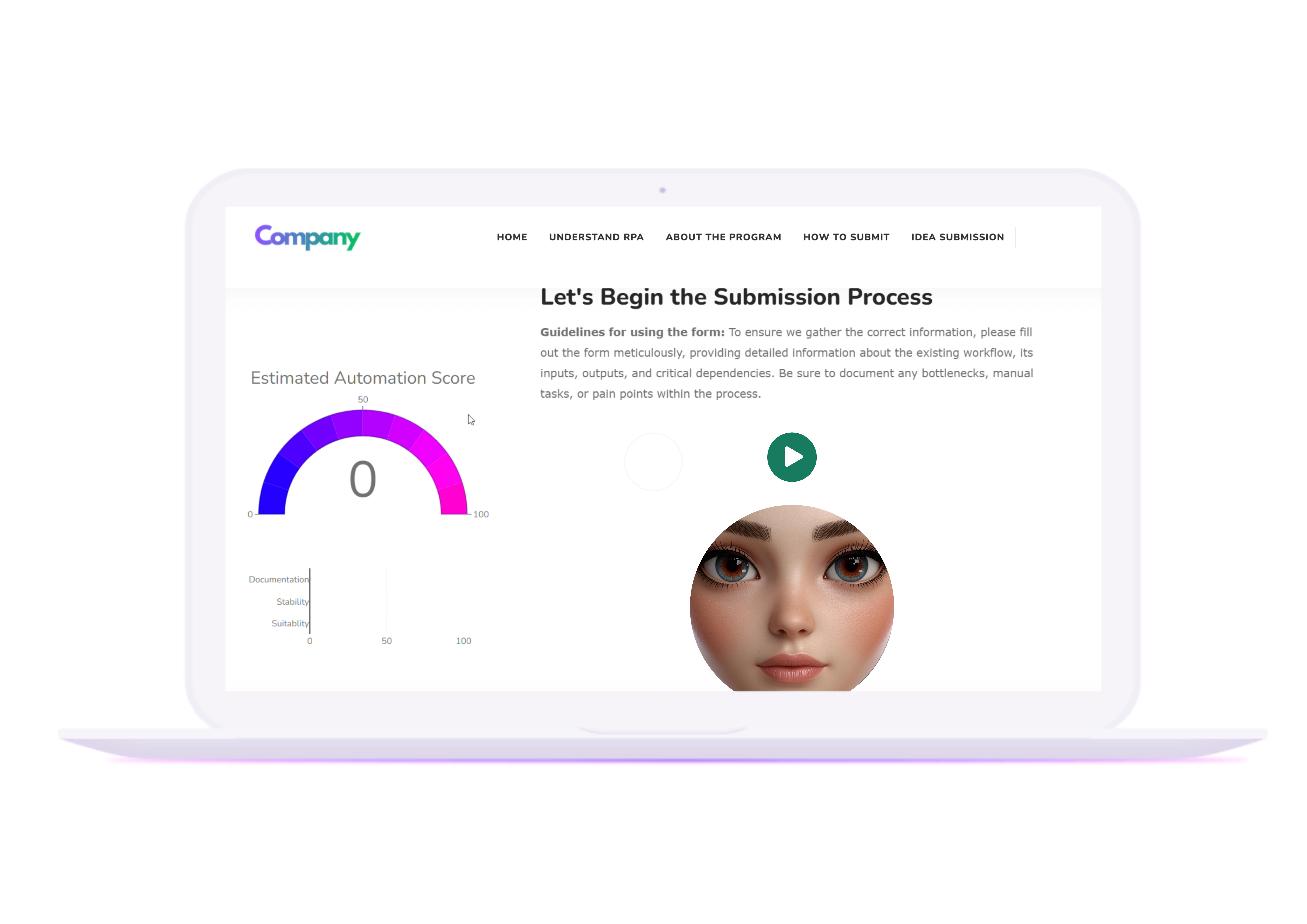 I scoped, designed, and built an in-house RPA Idea Submission Platform that combined LMS, program updates, and idea intake into a single integrated tool. The platform also introduced the organisation’s first Generative AI bot assistant to support automation education and internal Q&A. This product became a central hub for RPA operations and won multiple Innovation Awards for impact and execution.